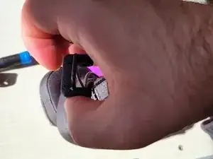 Используя открывающий инструмент iFixit или любой предмет, который сломается при слишком высоком давлении, вставьте крышку петли. Это меньшая деталь, которая закрывает стебель. Не стесняйтесь применять силу, так как все очень плотно.
