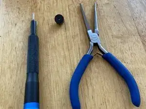 Необходимые инструменты и снятый пьезо-сигнализатор. Отвертка с крестовым наконечником и мелкие плоскогубцы.