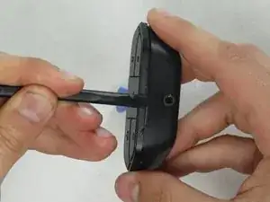 Вставьте лопатку под углом вверх между двумя пластиковыми частями над аудиопортом. Будьте осторожны, это может потребовать значительного усилия.