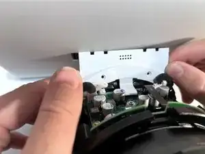 После снятия винтов на предыдущем шаге этот компонент держится только на клее. Может потребоваться небольшая сила, чтобы разорвать шов остаточного клея и снять ободок. Также можно слегка нагреть клей с помощью iOpener, чтобы ослабить адгезию.