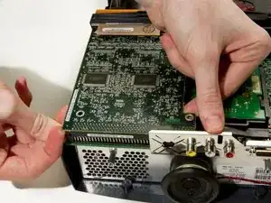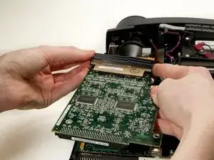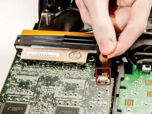 Отключите маленький ленточный кабель, соединяющий плату DLP с материнской платой.