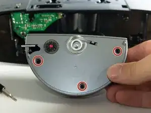 Теперь выкрутите четыре винта #2 длиной 16 мм на нижней части колонки. Это позволит снять нижнюю крышку.