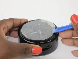 С помощью пластикового инструмента для открытия, снимите резиновую накладку на нижней части Echo.