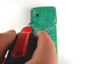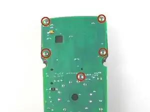 Используйте крестообразную отвертку Phillips №1, чтобы отвинтить пять серебряных винтов Phillips №1 длиной 11 мм, крепящих зелёную плату к серой пластиковой внутренней крышке.