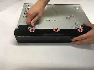 Аккуратно переверните устройство и отсоедините три пластиковых разъёма, которые крепят переднюю панель к нижней части корпуса устройства.
