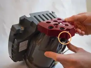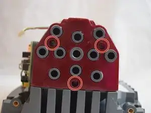 Удалите винты 1/2" Ph1 внизу красной крышки вентилятора.