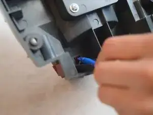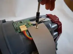 Удалите оба винта 3/8" Ph2, прикрепленные к серому ремню сверху и снизу.
