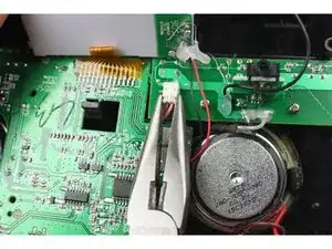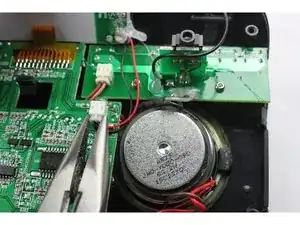 Используя плоскогубцы, разъедините проводной разъем над левым динамиком.