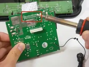 Отпаять эти 32 контакта, чтобы отсоединить кабель данных HDD от платы управления.