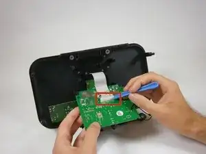 Используйте пластиковый инструмент для вскрытия, чтобы отщёлкнуть белый ZIF-разъём, соединяющий провода с платой.