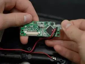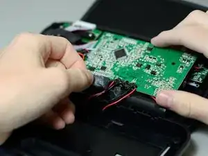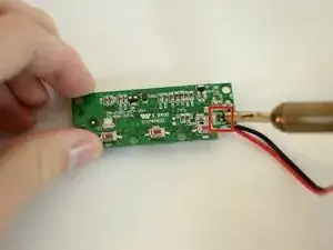 Отклейте клей, соединяющий красный и чёрный провода с платой.