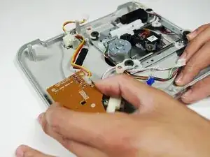 Возьмите верхнюю часть DVD-плеера и ориентируйте устройство, как показано на первом изображении.