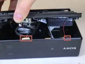 Найдите два проводных соединения под сборкой колонки, как показано, и отключите их пинцетом.