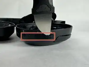 Удерживайте корпус драйвера одной рукой и вставьте инструмент для вскрытия в зазор между амбушюрой и корпусом драйвера.