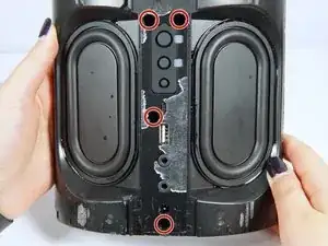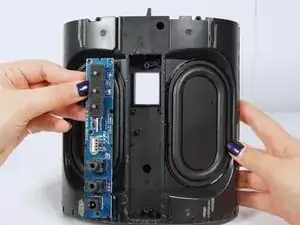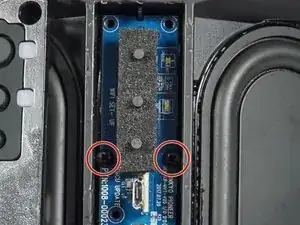 На задней панели Smart Speaker расположены разъёмы и другие порты. Панель заменяется целиком. Чтобы добраться до модуля, необходимо разобрать всю внутреннюю часть колонки. Обратите внимание: замена этой детали требует повреждения корпуса колонки.