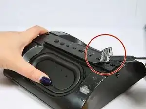 Не тяните слишком сильно: к детали снизу подсоединена плоская шлейфная проводка, которая может порваться при чрезмерном натяжении или отдалении.
