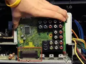 Ниже представлен подробный список инструкций по правильному и безопасному демонтажу и замене дефективной платы ввода/вывода телевизора Mitsubishi WD57734.