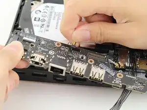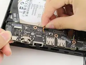 Отсоедините небольшой пучок чёрных проводов от платы ввода/вывода, аккуратно потянув вверх.