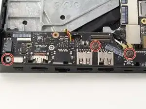 Удалите три винта Torx T6, крепящие плату ввода/вывода.