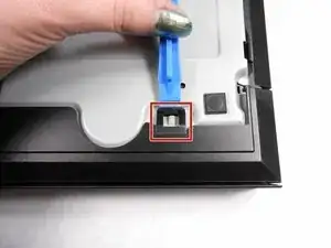 Используя инструмент для вскрытия, поднимите защёлки, расположенные в нижней части передней пластиковой панели.