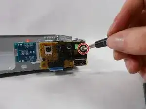 Открутите один винт с крестообразной головкой длиной 5 мм с передней части платы устройства.
