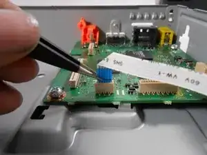 Аккуратно извлеките ленточный кабель с помощью пластиковых пинцетов из материнской платы.