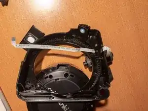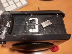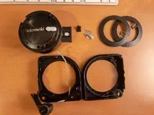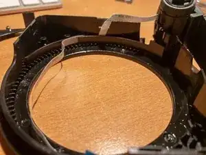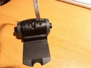 Все части разобраны, кроме плоского кабеля из секции USB-порта. Обратите внимание на пластиковую деталь с белой меткой. Это калибровочная мишень. Убедитесь, что она остаётся чистой.