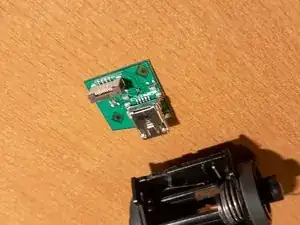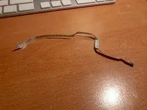 Снимите чёрную пластиковую защёлку, закрывающую разъём плоского кабеля. Отведите коричневый фиксатор от основания в месте входа плоского кабеля. Кабель ослабнет и его можно будет легко извлечь.