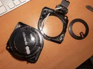 После того как все защёлки будут отогнуты, аккуратно разъедините две части корпуса. Будьте осторожны, чтобы не повредить плоский кабель.