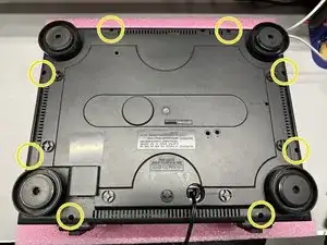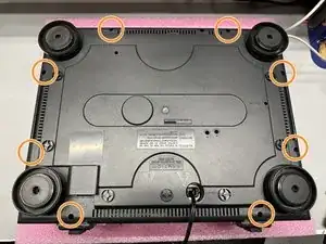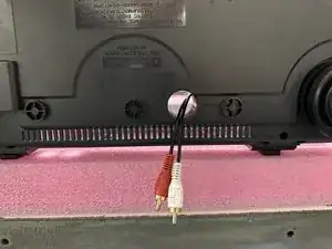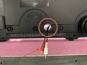 При снятии нижней крышки, вероятно, потребуется наклонить крышку в сторону задней части (стороны с RCA-разъемами), чтобы крышка могла пройти вокруг портов.