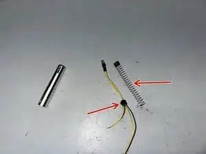 Вынув металлический корпус и подсветку, снимите пружину и резиновую втулку с старой подсветки и установите их на новую подсветку.