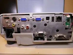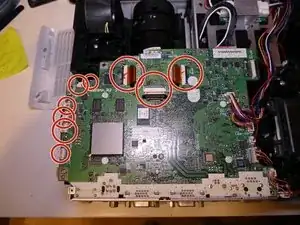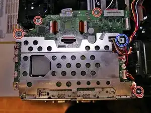 После установки нового поляризатора установите плату обратно, чтобы протестировать проектор. Для включения при разобранном корпусе потребуется удерживать выключатель крышки лампы.