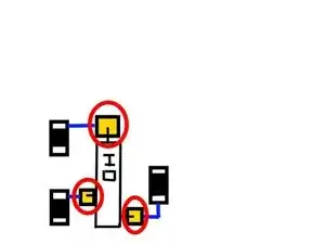 Повторите все вышеперечисленное для всех 3 контактов. В конце должно получиться что-то вроде одного из приведённых выше изображений, где синие линии — это ближайшие следы, которые можно игнорировать, а зелёные линии — это ваши перемычки от выводов резисторов.