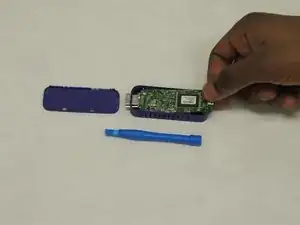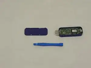 Вставьте синюю пластиковую открывалку в одну из щелей на задней стороне Roku, чтобы открыть Roku Streaming Stick 3500R. Будьте осторожны, чтобы не сломать ничего при снятии задней крышки.