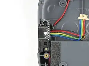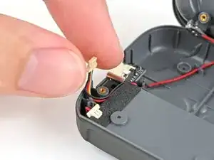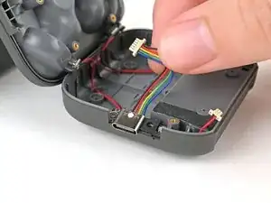 Используйте наконечник лопатки, чтобы поджать пластиковую часть разъёма кабеля правого наушника и вытянуть его из розетки.