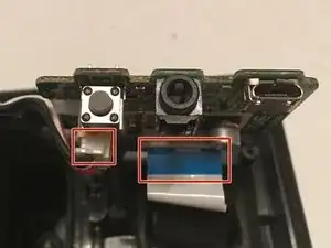 Поднимите аккумуляторный блок и печатную плату из корпуса и найдите провода и плоский разъём, показанный на рисунке.