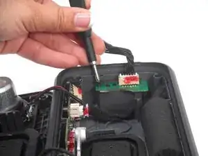 Используйте отвертку Phillips #0, чтобы удалить два винта длиной 7,5 мм, которые крепят печатную плату порта зарядки к корпусу.