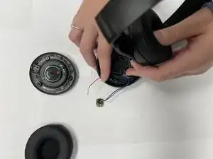 Используйте нейлоновую или металлическую лопатку, чтобы осторожно снять амбушюр с правого динамика.
