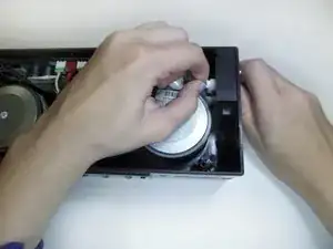 Снимите чёрную крышку с динамика, потянув её обеими руками вверх.