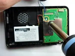 Поместите замену материнской платы в навигационную систему и припаивайте провода динамика на замененной материнской плате.