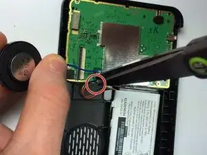 Используйте кусачки, чтобы отрезать и отделить черный провод динамика от материнской платы.