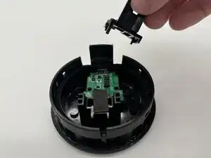 Используйте большие пальцы, чтобы нажать на две пластиковые защелки внутри корпуса динамика и аккуратно вытолкнуть внутренние компоненты.