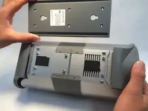 Удалите оба винта, крепящих розетку питания к нижнему корпусу.