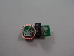 После извлечения платы найдите серебристый компонент на плате. Это порт зарядки. Снимите порт зарядки. Для установки обратно компонент необходимо припаяать к плате.