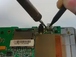 Используя пинцет, отсоедините провода, соединяющие батарею и динамик с материнской платой.