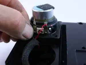 С открытой нижней частью динамика размотайте провода от соединительных клемм и замените динамик.