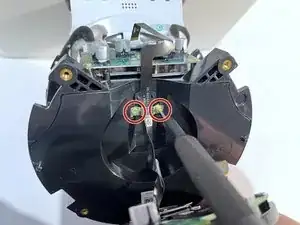 Используйте отвертку T6 Torx, чтобы выкрутить два винта длиной 7 мм из кронштейна, закрывающего шлейф, подключённый к моторному кронштейну.