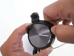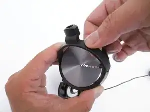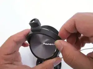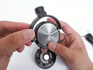 Отделите поворотное крепление от чашки наушника.