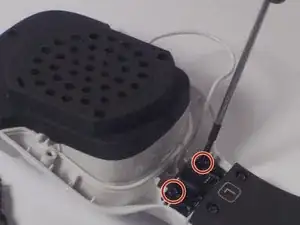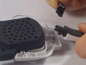 Крепко возьмите черный амбушюр одной рукой и белую рамку динамика другой рукой.