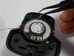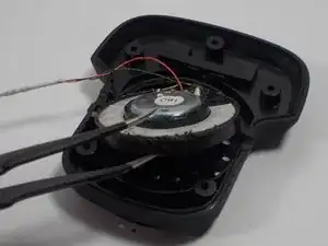 Удалите клей, удерживающий динамик, соскребая клей кончиком пинцета.